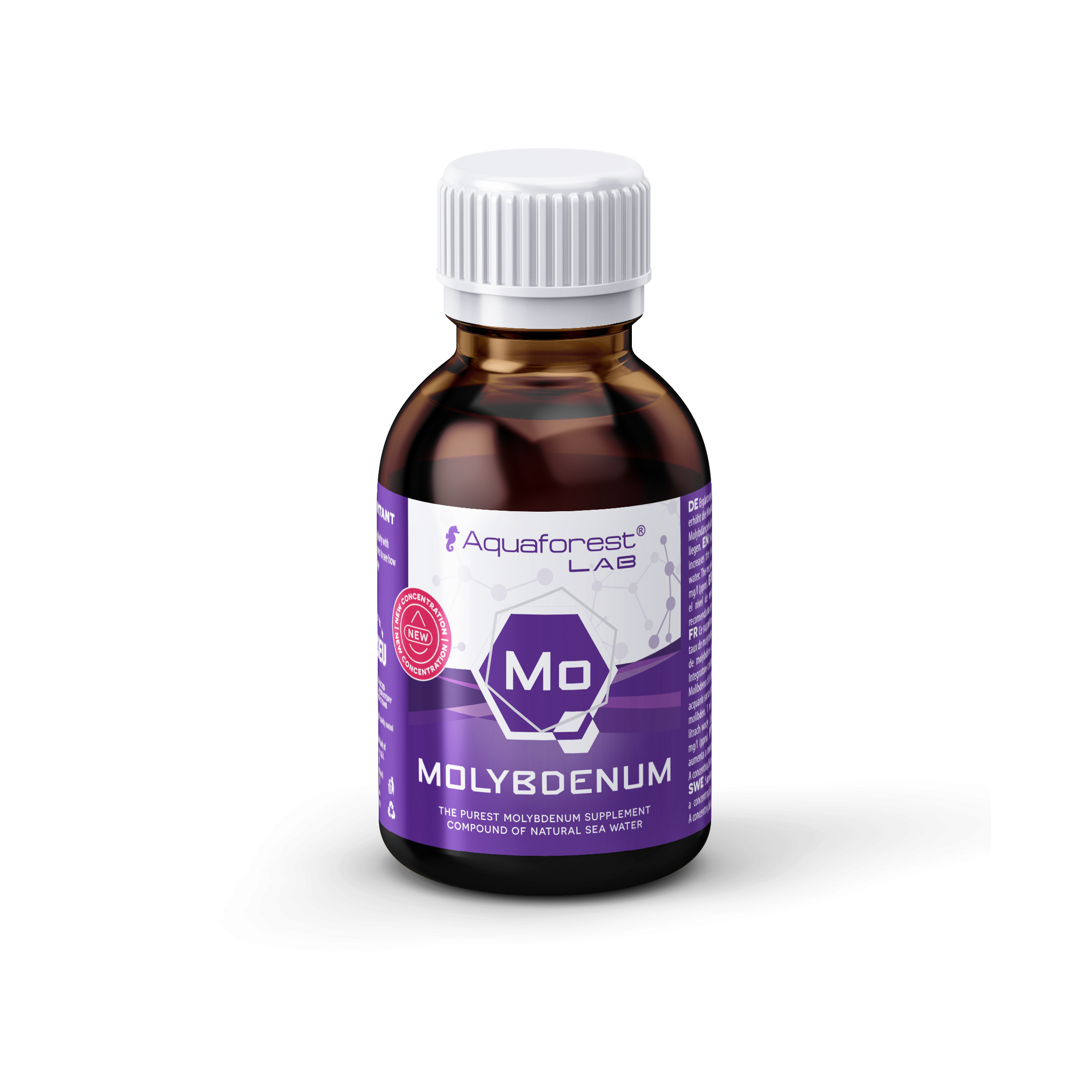 Dozowanie: Suplement zawiera skoncentrowany molibden. 1 ml produktu podnosi poziom molibdenu o 0.004 mg/l (ppm) w 100 litrach wody. Zalecany poziom molibdenu w wodzie akwariowej to 0.0045 – 0.012 mg/l (ppm). Pamiętaj, że maksymalna bezpieczna dawka dzienna wynosi 1 ml na 100 litrów wody. Jeżeli wymagana jest większa dawka, rozbij ją na kilka dni. Dawkowanie powinno być ustalone na podstawie konsumpcji mikroelementów w akwarium. Należy pamiętać, że każde akwarium jest inne, a dawkowanie jest zależne od obsady koralowców i indywidualnego zapotrzebowania. Zarówno niedobór, jak i nadmiar mikroelementów wpływa niekorzystnie na kondycję mieszkańców akwarium, dlatego dozowanie preparatu należy dobrać i modyfikować na podstawie regularnych testów wody Aquaforest Lab.